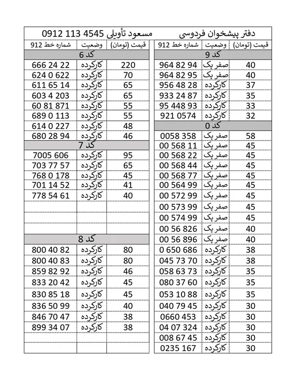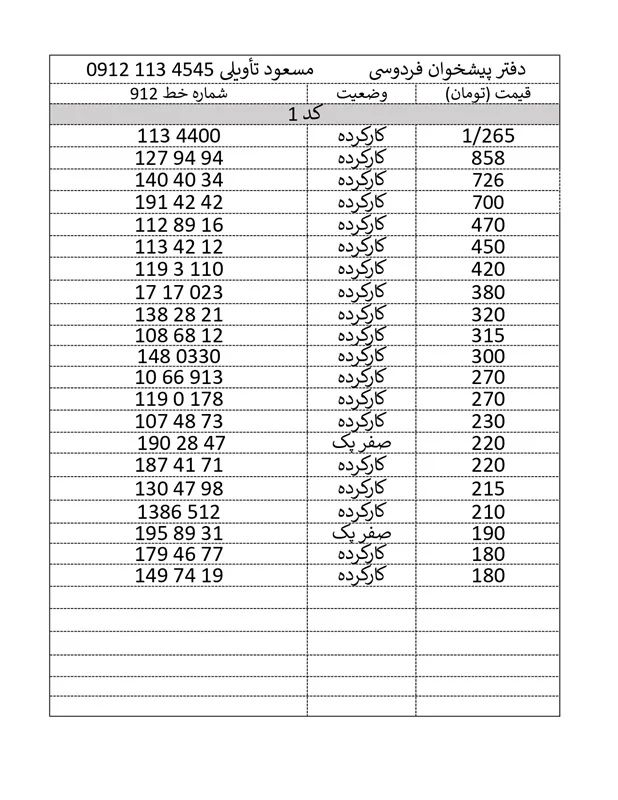 بالاترین خریدار سیم کارت 0912 پیشخوان فردوسی کد ۷۲۱۶۲۳۸۵