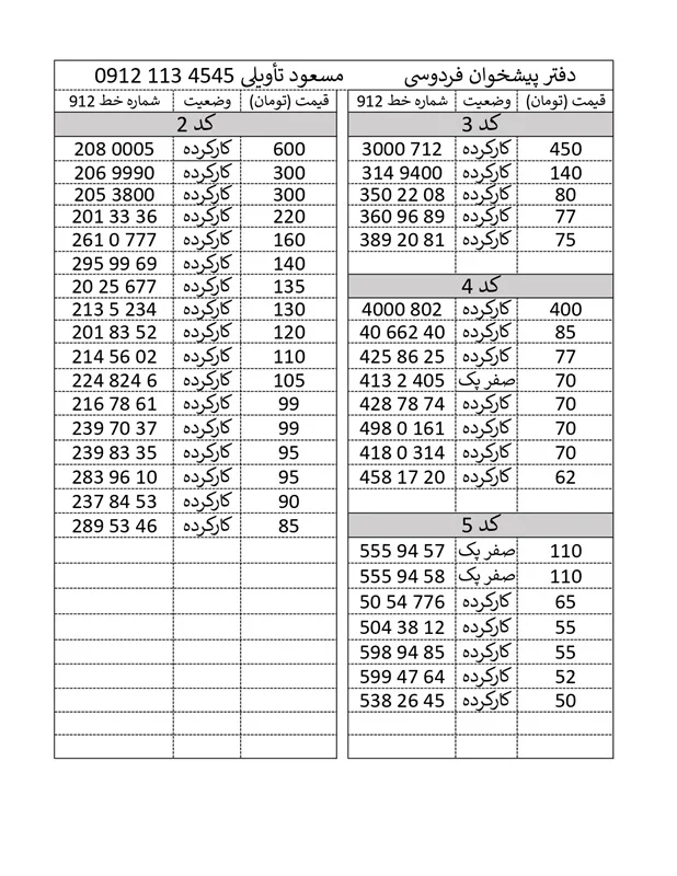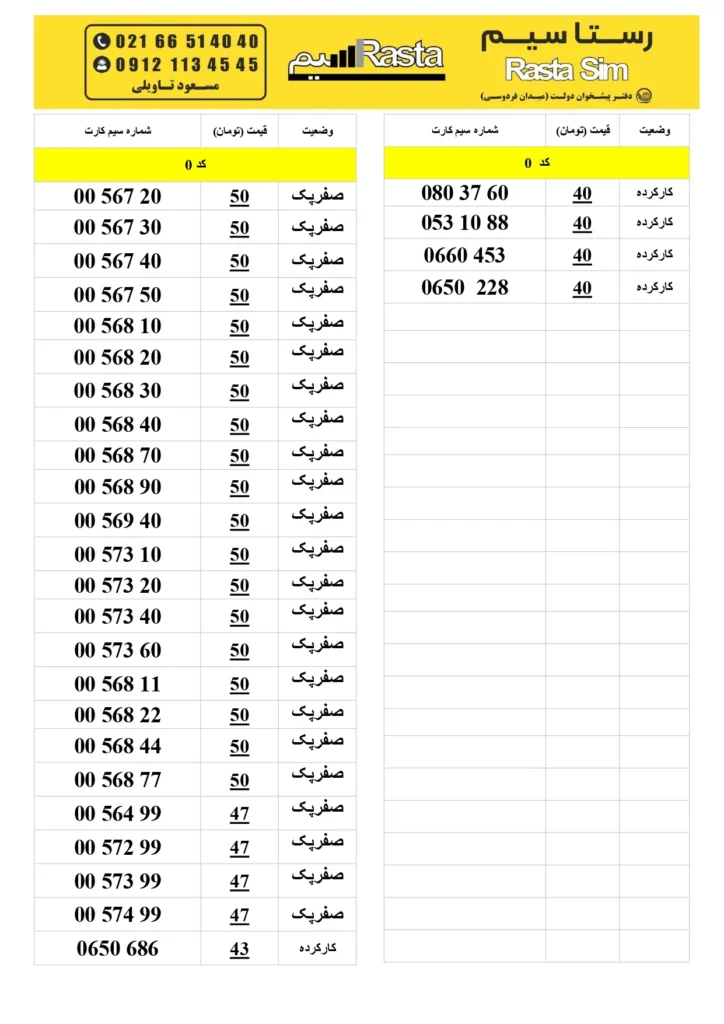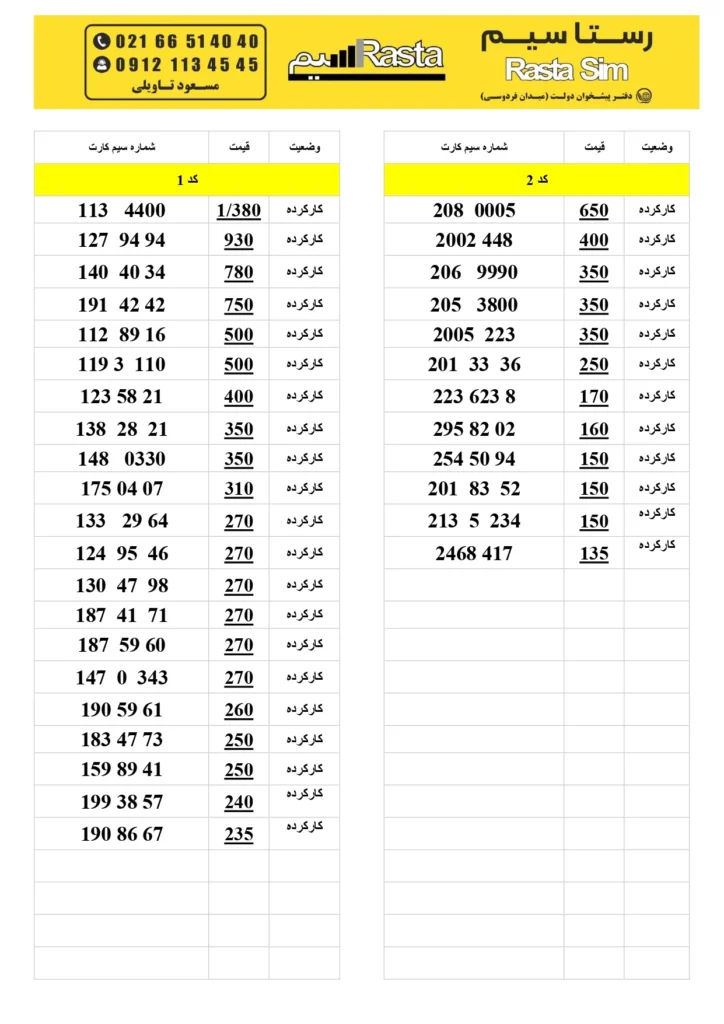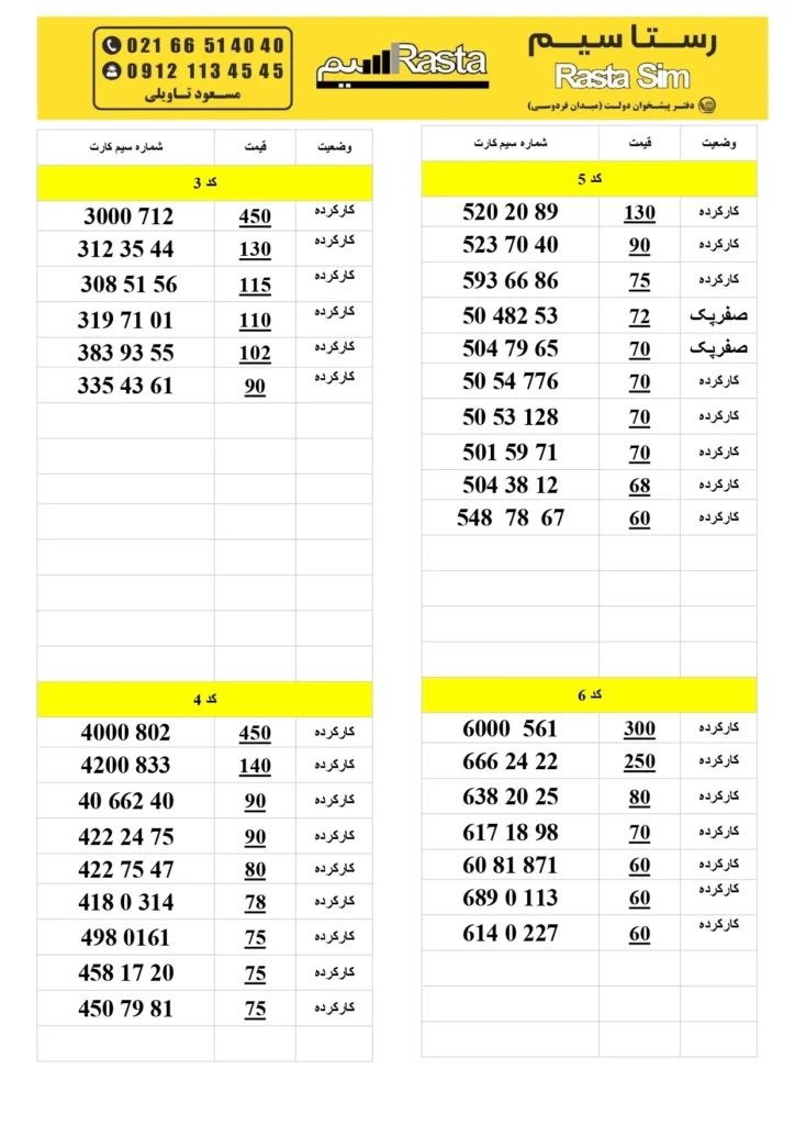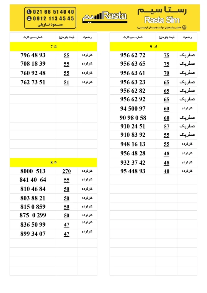 رستاسیم، خرید و فروش سیم کارت های رند 0912